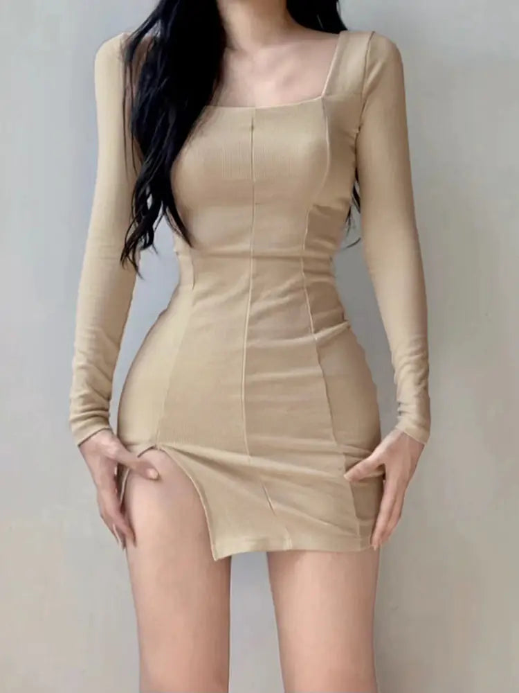 Step into the season in style with the Rockmore Chic Mini Dress—your go-to outfit for parties, date nights, or casual outings with a fashionable flair. This modern mini dress features a sleek square collar and elegant long sleeves that combine classic sophistication with a bold, contemporary twist.